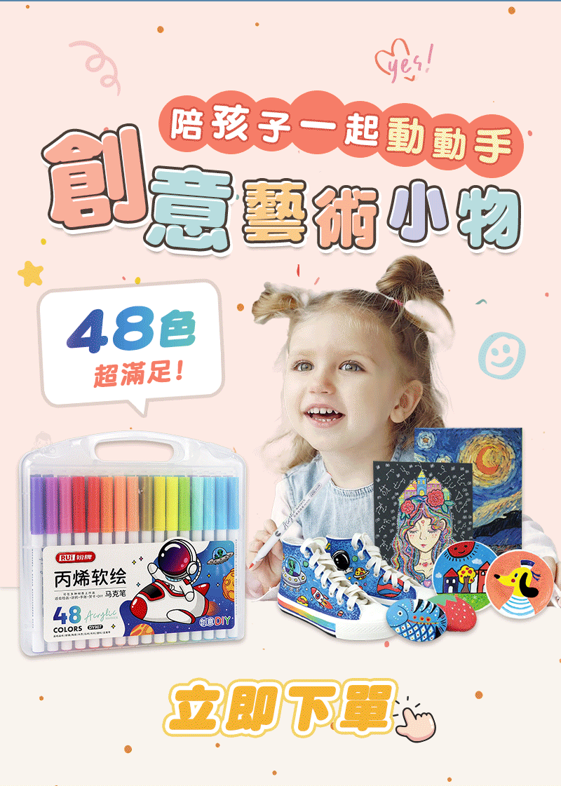 2分鐘前丙烯彩繪馬克筆 超強覆蓋力,萬物材質皆可畫,專為兒童研發,輕鬆擦拭不卡色 - 【一套】丙烯彩繪馬克筆 (48色)NT$580